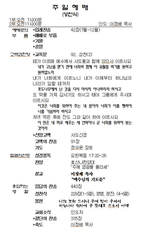 1.ÁÖÀÏ¿¹¹è, ¼ö¿äÀϹ㿹¹è´Â º»´ç¿¡¼ µå¸®°í, »õº®±âµµÈ¸´Â ¼Ò¿¹¹è½Ç¿¡¼ µå¸³´Ï´Ù. Á¤±â¿¹¹è¸¦ ºüÁöÁö ¸¿½Ã´Ù.