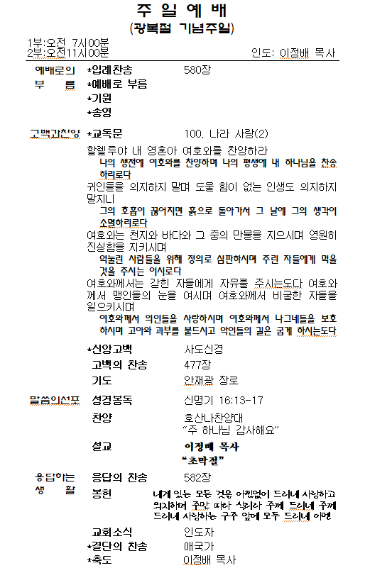 2.¿À´ÃÀº ±¤º¹Àý ±â³äÁÖÀÏ·Î Áöŵ´Ï´Ù.