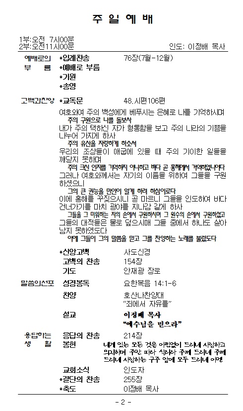 1.±¸¿ª¿¹¹è – ¿À´Ã ÁÖÀÏ2ºÎ ¿¹¹è ÈÄ, 12½Ã 30ºÐ.
