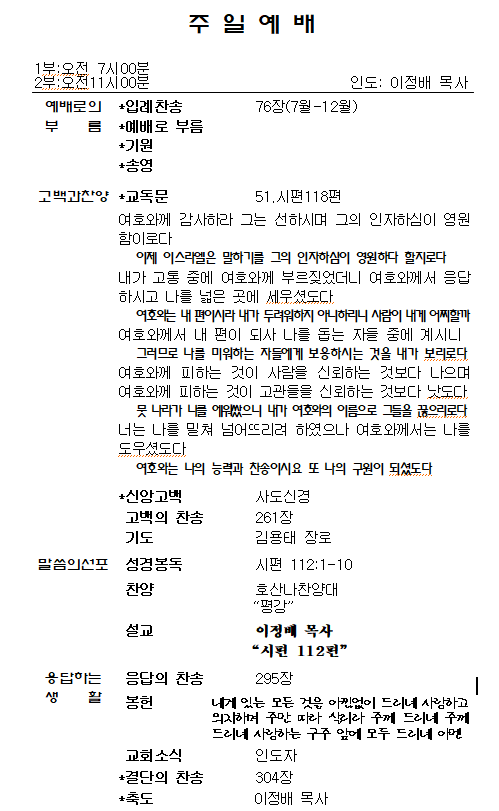 1.Á¦Á÷ȸ - ¿À´Ã ÁÖÀÏ2ºÎ ¿¹¹è ÈÄ. º»´ç.