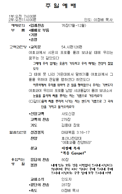 1.ÁÖÀÏ¿¹¹è, ¼ö¿äÀϹ㿹¹è´Â º»´ç¿¡¼ µå¸®°í, »õº®±âµµÈ¸´Â ¼Ò¿¹¹è½Ç¿¡¼ µå¸³´Ï´Ù. Á¤±â¿¹¹è¸¦ ºüÁöÁö ¸¿½Ã´Ù.