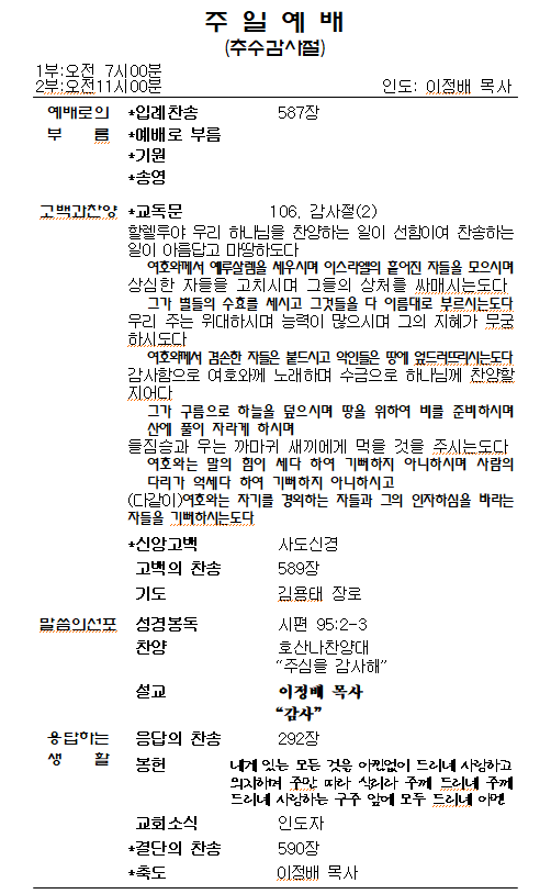 1.ÁÖÀÏ¿¹¹è, ¼ö¿äÀϹ㿹¹è´Â º»´ç¿¡¼ µå¸®°í, »õº®±âµµÈ¸´Â ¼Ò¿¹¹è½Ç¿¡¼ µå¸³´Ï´Ù. Á¤±â¿¹¹è¸¦ ºüÁöÁö ¸¿½Ã´Ù.