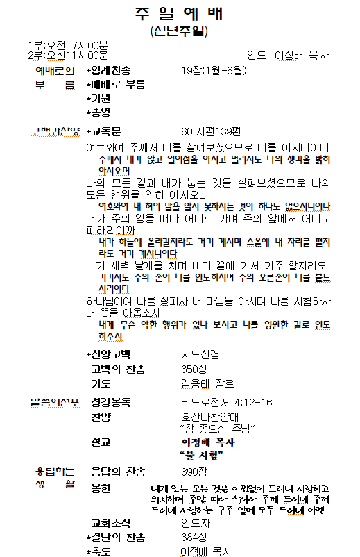 1.ÁÖÀÏ¿¹¹è, ¼ö¿äÀϹ㿹¹è´Â º»´ç¿¡¼ µå¸®°í, »õº®±âµµÈ¸´Â ¼Ò¿¹¹è½Ç¿¡¼ µå¸³´Ï´Ù. Á¤±â¿¹¹è¸¦ ºüÁöÁö ¸¿½Ã´Ù.