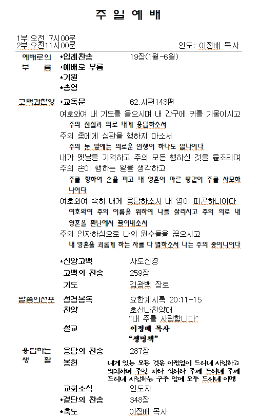 1.ÁÖÀÏ¿¹¹è, ¼ö¿äÀϹ㿹¹è´Â º»´ç¿¡¼ µå¸®°í, »õº®±âµµÈ¸´Â ¼Ò¿¹¹è½Ç¿¡¼ µå¸³´Ï´Ù. Á¤±â¿¹¹è¸¦ ºüÁöÁö ¸¿½Ã´Ù.