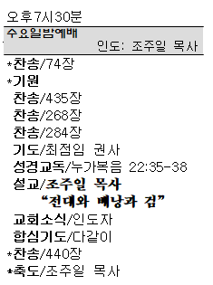 1.ÁÖÀÏ¿¹¹è, ¼ö¿äÀϹ㿹¹è´Â º»´ç¿¡¼ µå¸®°í, »õº®±âµµÈ¸´Â ¼Ò¿¹¹è½Ç¿¡¼ µå¸³´Ï´Ù. Á¤±â¿¹¹è¸¦ ºüÁöÁö ¸¿½Ã´Ù.