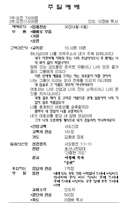 1.±¸¿ª¿¹¹è - ¿À´Ã ÁÖÀÏ2ºÎ¿¹¹è ÈÄ, 12½Ã 30ºÐ.